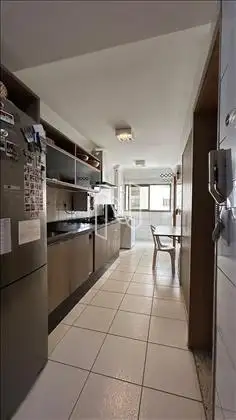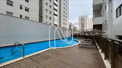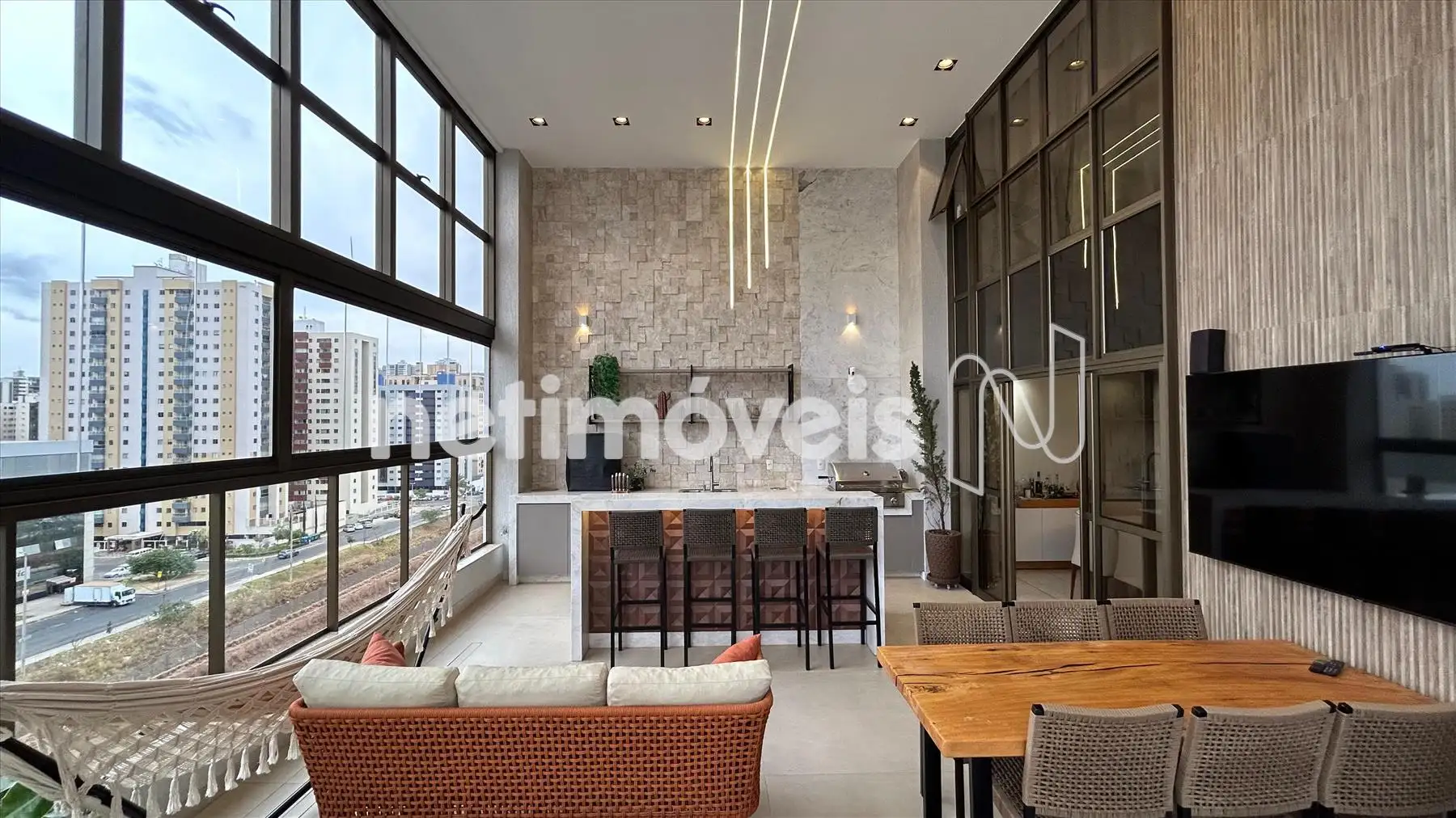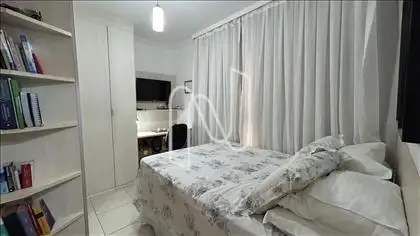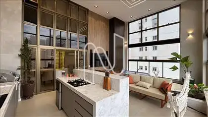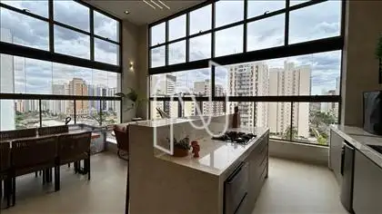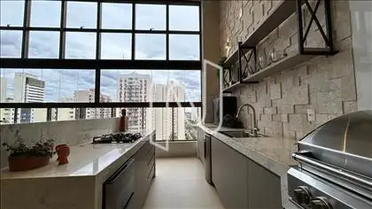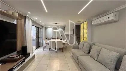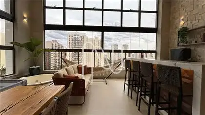 Apartamento de 180?m² com 2 vagas livres. São 3 suítes, incluindo uma master com penteadeira, sala ampla em dois ambientes, sala de TV, varanda gourmet com pé-direito duplo e cozinha planejada com armários Toddeschini.