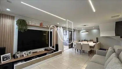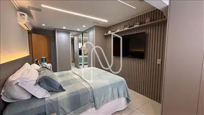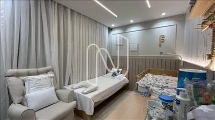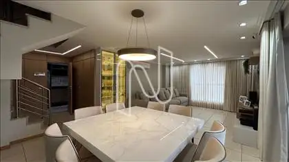 Possui 5 banheiros, lavabo, painel fixo na sala, projeto de iluminação, automação de som, sistema de câmeras, ar-condicionado (24.000 BTUs na sala e 12.000 BTUs nos quartos), porcelanato 120x120, ripado decorativo e projeto de decoração.