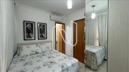 O condomínio oferece lazer completo: piscina, brinquedoteca, churrasqueira, espaço fitness, salão de festas, salão de jogos e quadra poliesportiva.