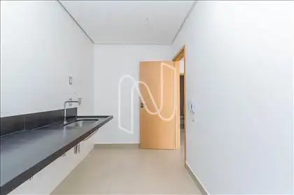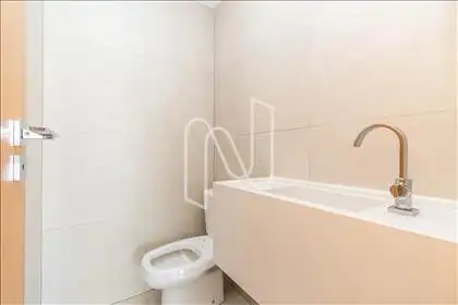 A cozinha fechada já possui bancadas, a área de serviço é reservada, e o imóvel ainda conta com lavabo e banheiro social, além da suíte espaçosa para garantir mais privacidade.
