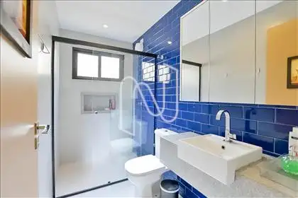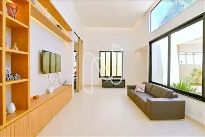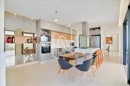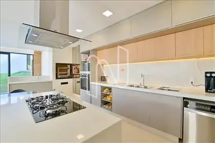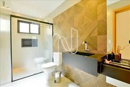 Belíssima casa dentro de condomínio, com excelente padrão de acabamento, com projeto arquitetônico do Studio Treliça. Ambientes amplos, arejados e bem iluminados, com projeto de iluminação, piso em porcelanato e esquadrias em alumínio. Cozinha moderna com armários planejados, coifa e ilha em bancada.